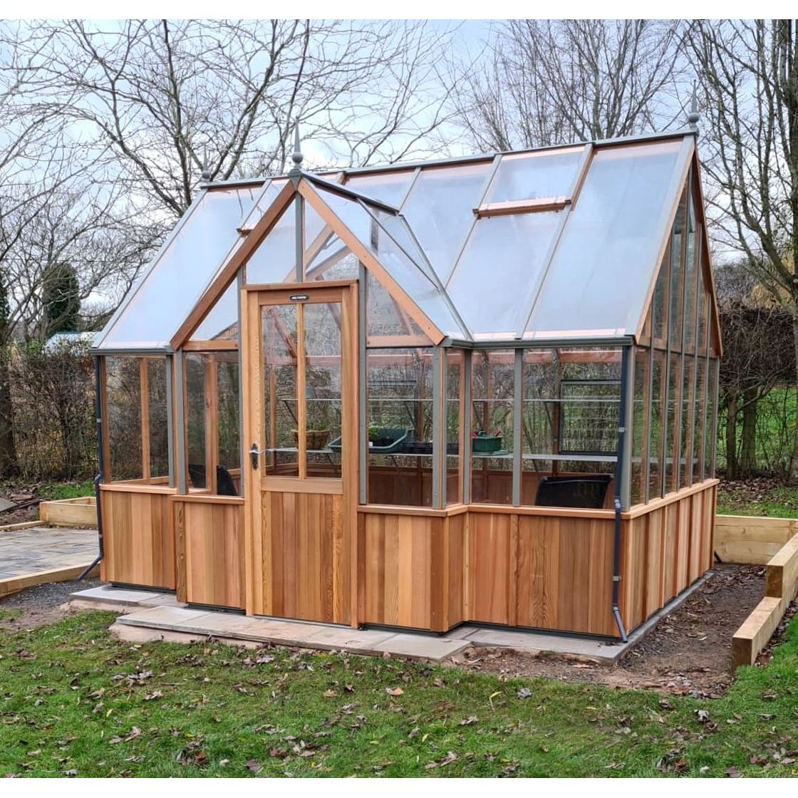 Cambridge T-shaped Cedar Half-Boarded Greenhouse