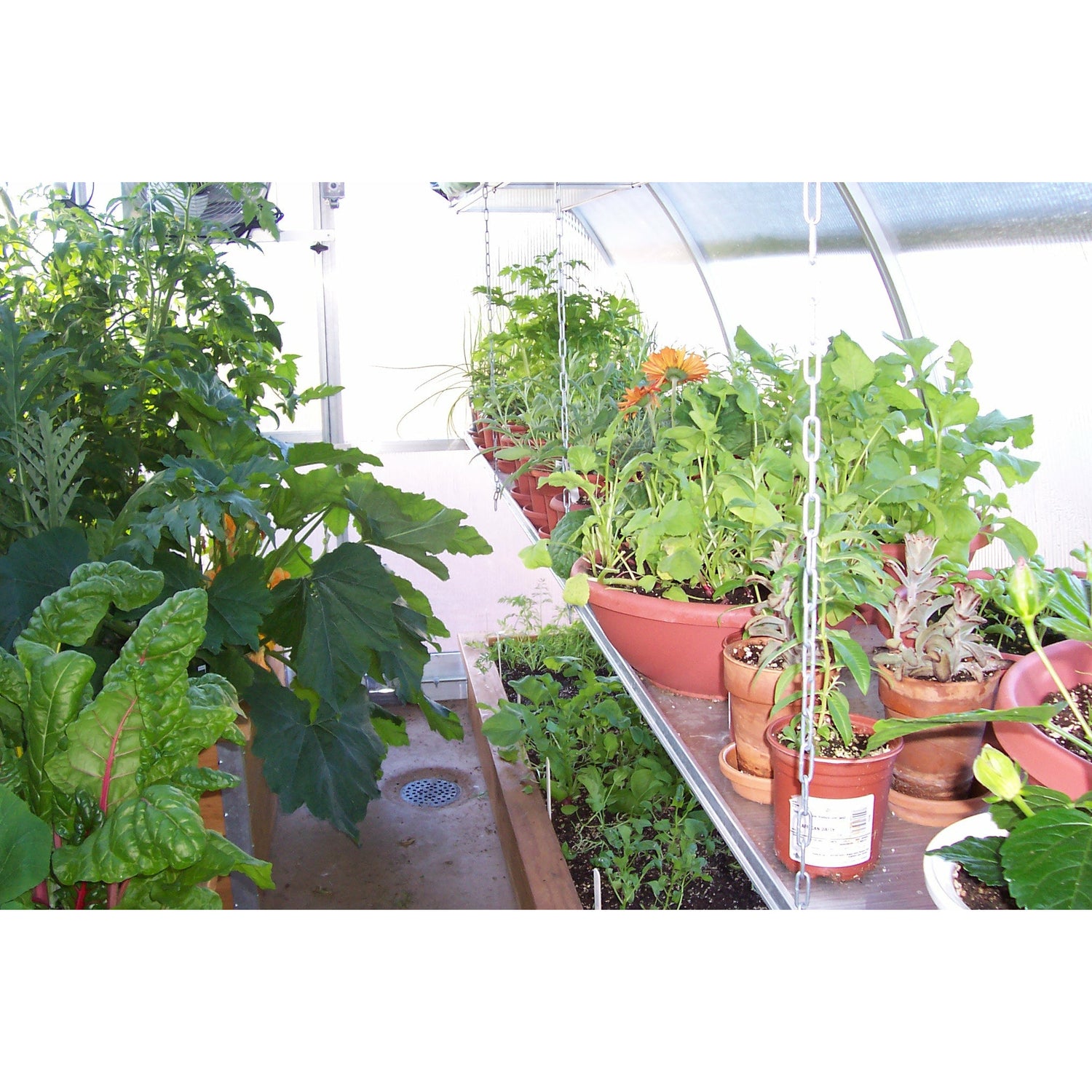 - The Riga Greenhouse has an optional two-layer shelving system with removable shelf inserts. This allows for tall plants (beans, tomatoes, etc.).