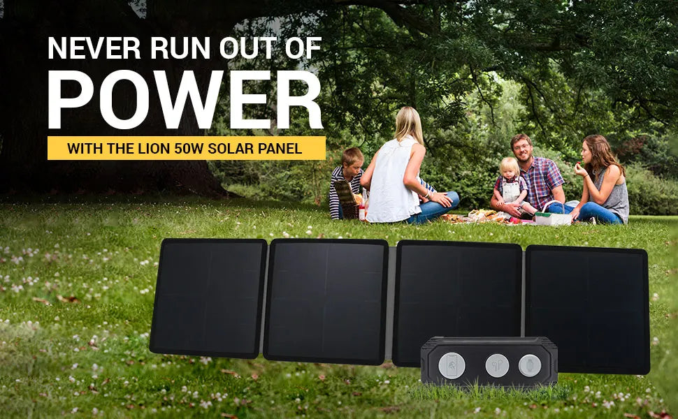 Lion 50W 12V Panel Folding Solar Panel, 50W, 12V, 1 USB-A, 1 USB-C