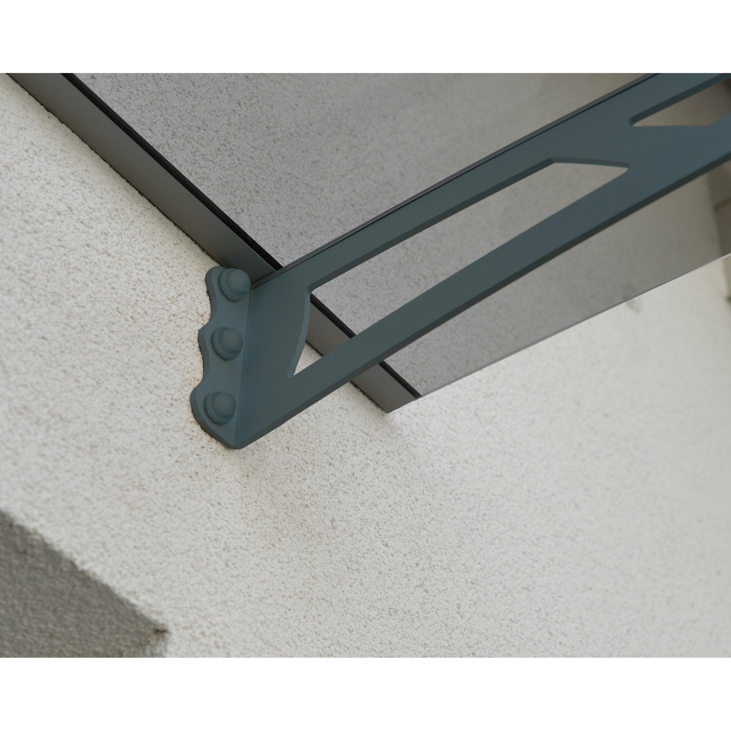 An integrated front gutter directs rainwater off to the sides. When mounting the awning on lap siding or anchoring to wall studs, an Aquila 2050 siding kit, (sold separately), is recommended.