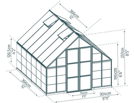 - Diffused Roof Panels: 4 mm twinwall roof panels protect from strong sunlight exposure and extend your season by protecting plants from Fall frosts.