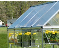 With two types of glazing, you get a balanced DIY greenhouse that combines the protection of the diffused twin-wall roof panels with the light transmission of the crystal-clear wall panels for ideal growing conditions. All panels are made of UV-protected polycarbonate, a glass-like, virtually unbreakable high-end polymer that is uniquely suited for greenhouses.
