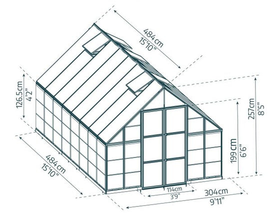 - Diffused Roof Panels: 4 mm twinwall roof panels protect from strong sunlight exposure and extend your season by protecting plants from Fall frosts.