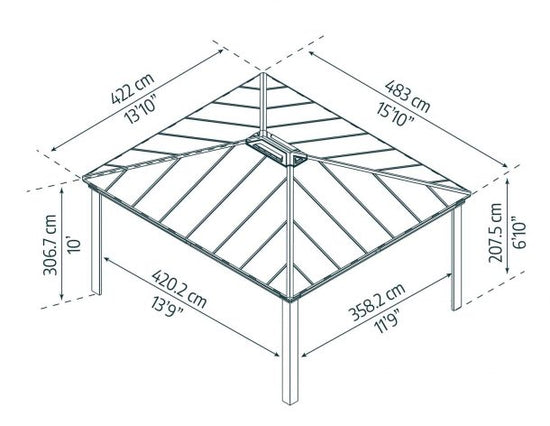 - Available Accessories: The metal gazebo can be fitted with both Palram – Canopia curtains and netting for a screened gazebo and perimeter/ internal lighting can be added (accessories sold separately)
