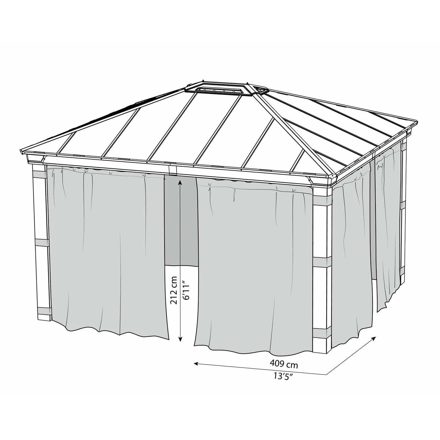 - Clip-on hidden hooks easily attach to the existing gazebo track line