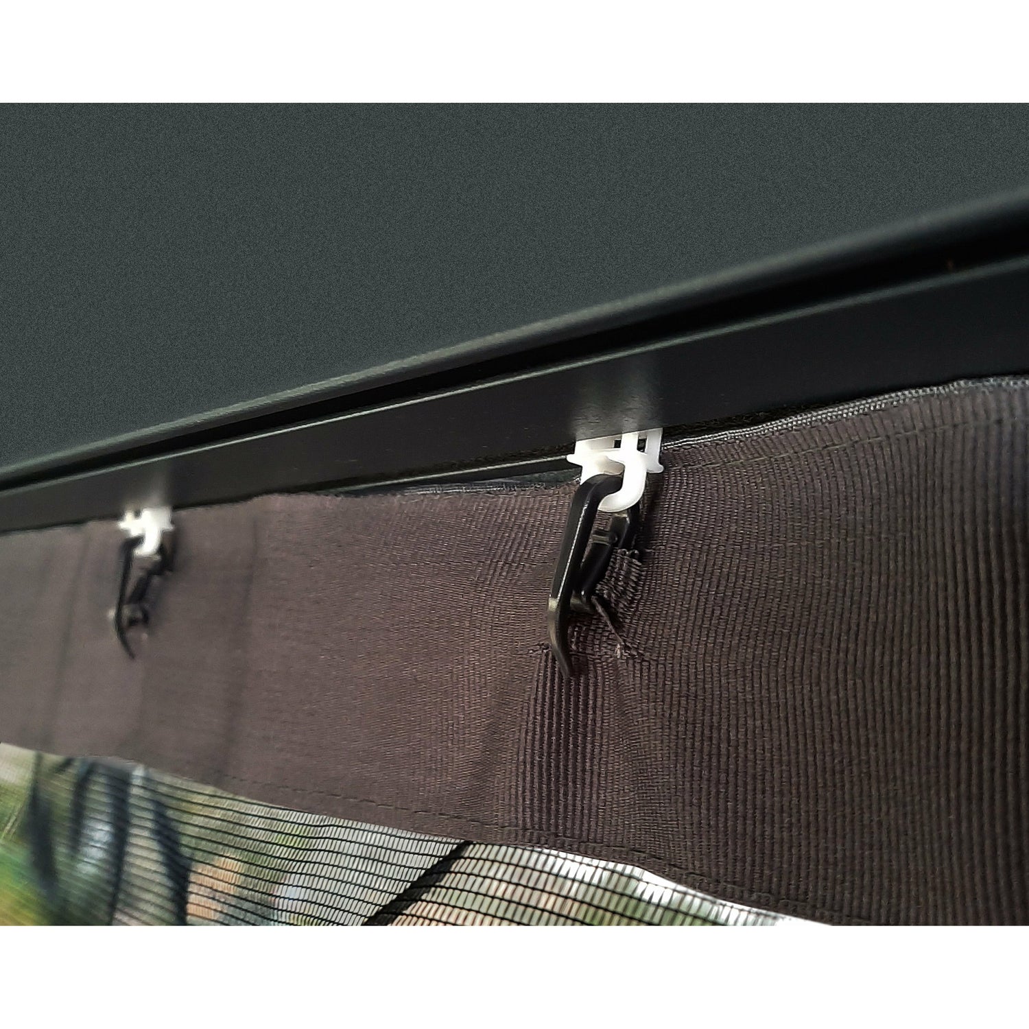 - Clip-on hidden hooks easily attach to the existing gazebo track line.