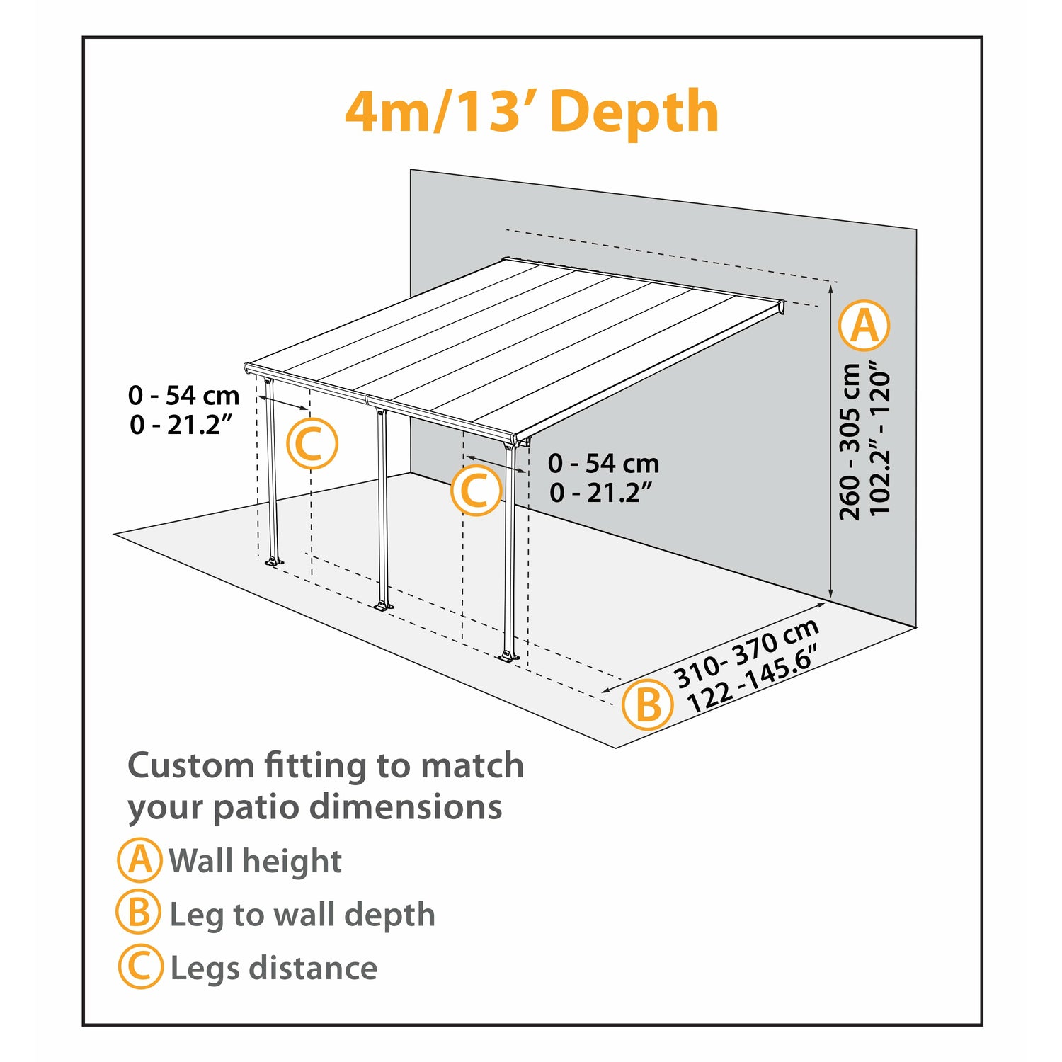 Protect yourself and your patio from the elements with the new Feria patio cover. Clear, UV protected, polycarbonate roof panels protect you, your family and patio furniture from harsh UV rays, while still allowing sun to shine through. White powder coated aluminum frame is neutral enough to match any home color, and provides protection from rust and discoloration. Feria framing also easily adjusts to fit your patio’s unique size.