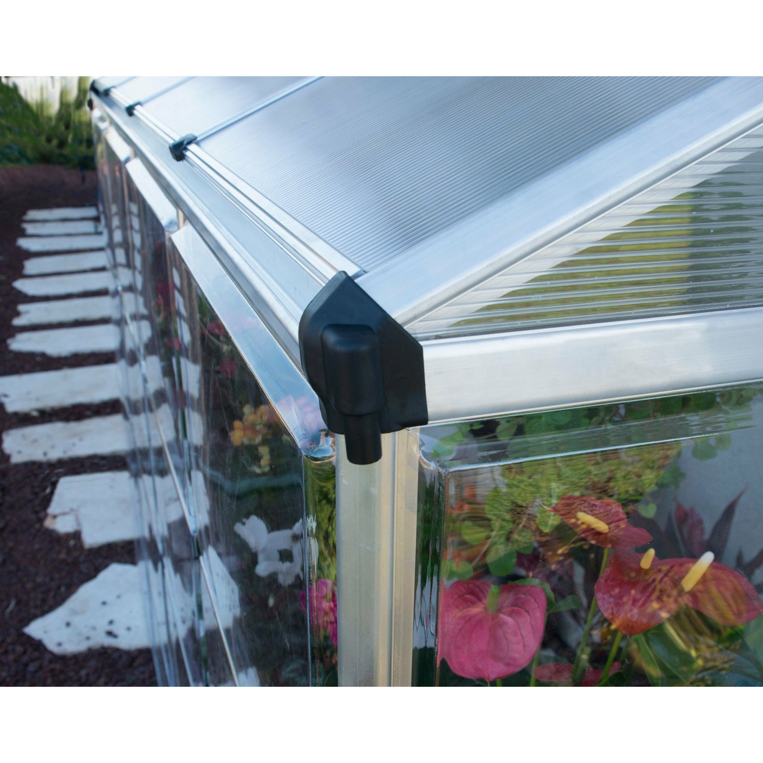 The Palram - Canopia Lean-To gives you all the advantages of a hobby greenhouse in a familiar, yet modern design. Perfect for smaller backyards and limited spaces such as balconies or patios, you’ll be able to start growing your own organic herbs and vegetables. With a rust-resistant aluminum frame and virtually unbreakable polycarbonate panels, you have a structure that will stand tall against inclement weather and provide you the growing environment you are looking for.