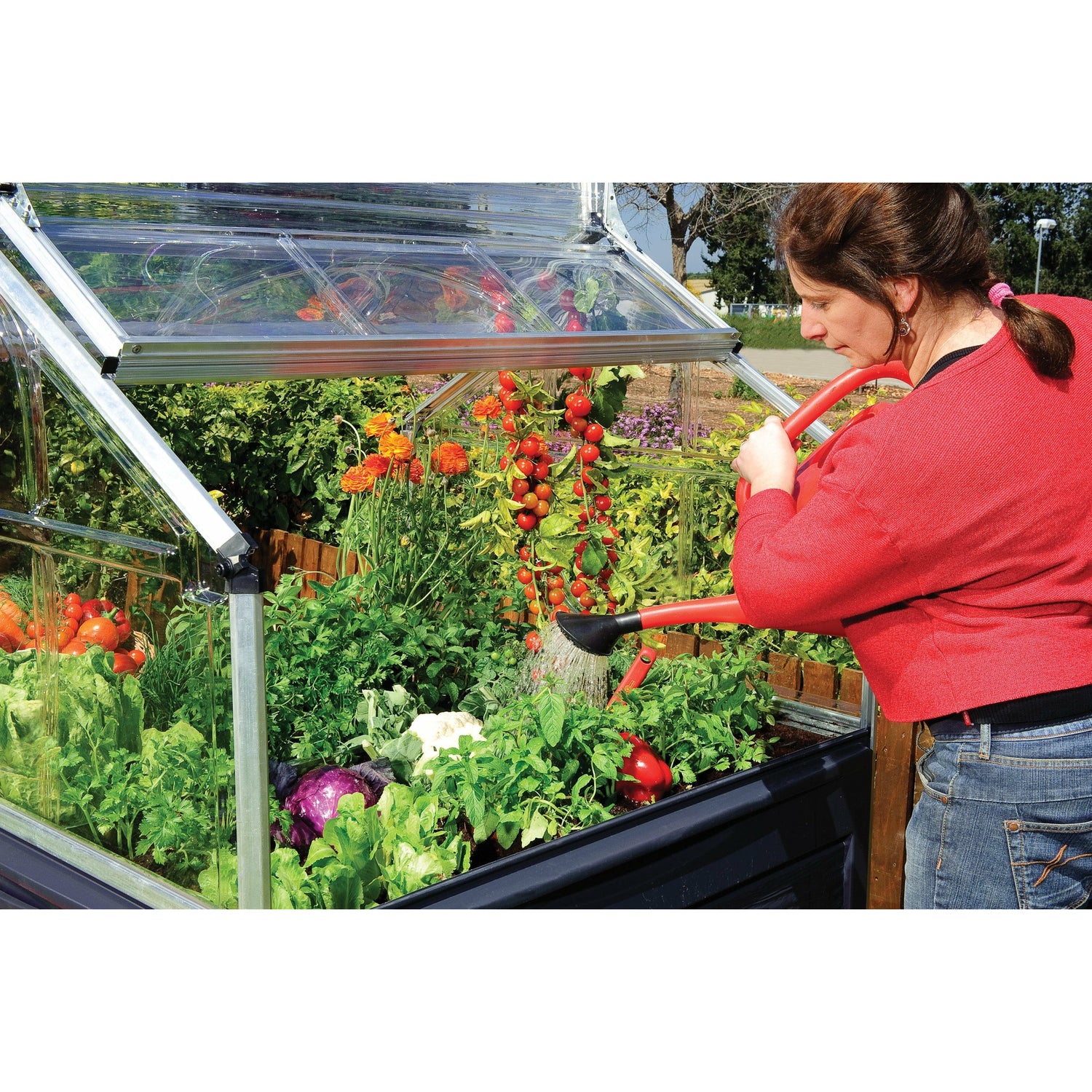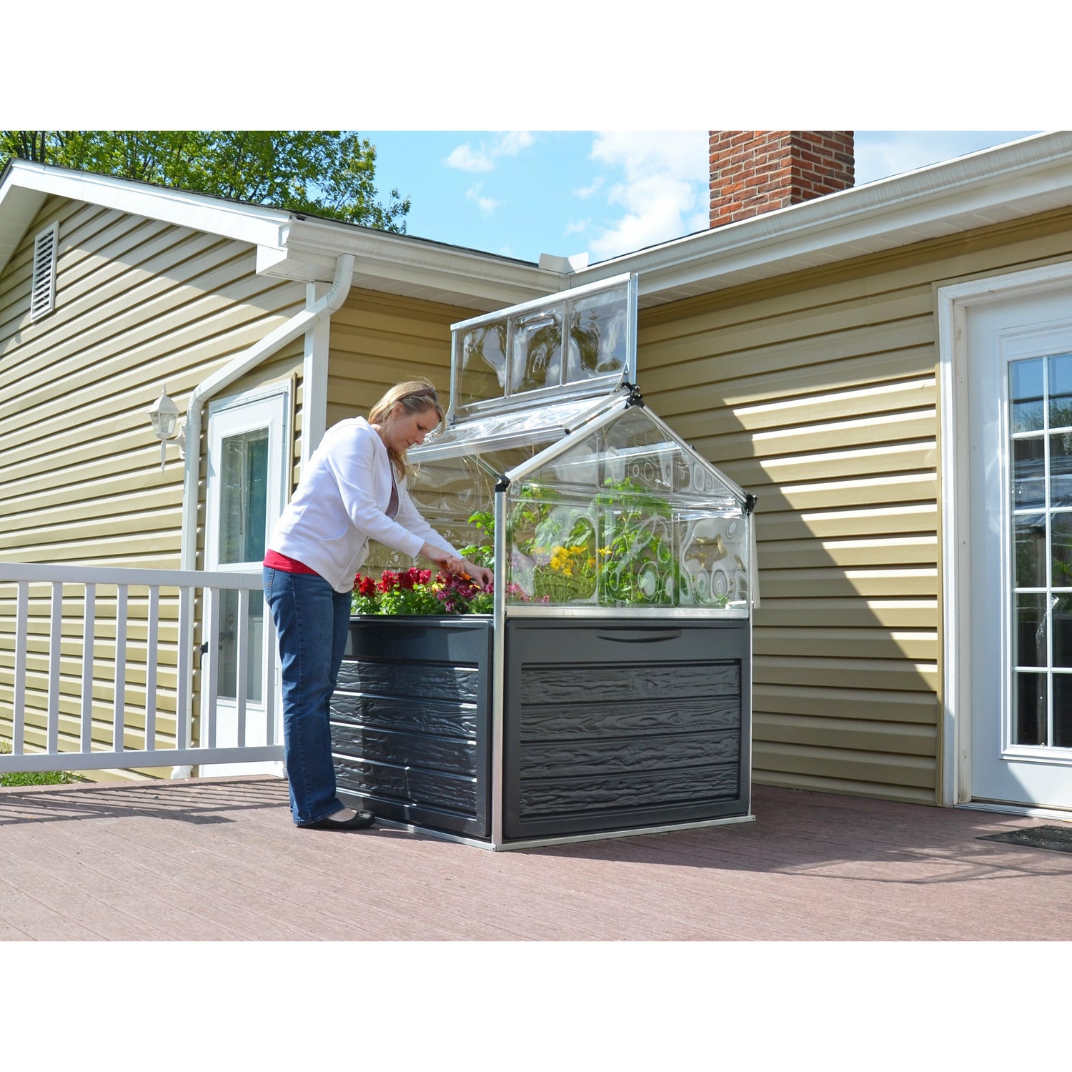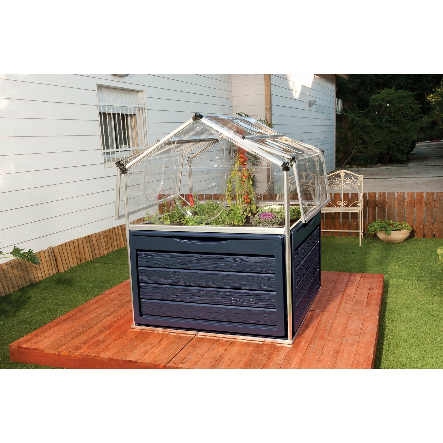 Take your patio garden to a whole new level. The Plant Inn is the perfect product for growing in small spaces and raised beds make gardening accessible to everyone. No garden shed? No problem! The Plant Inn has built in storage space for all of your gardening tools and accessories. Unbreakable polycarbonate panels help protect your plants from pests and cold. Sides hinge open for easy access and temperature control. Includes two deep planting trays, internal water drainage and plant hangers for trellising.