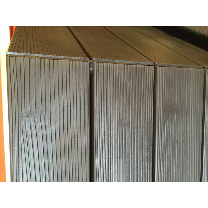 This German product is constructed of sturdy recycled plastic molded with a beautiful wooden texture. The components are UV and moisture resistant so no routine sealing or painting is needed, and all parts come with a 5 Year Warranty.