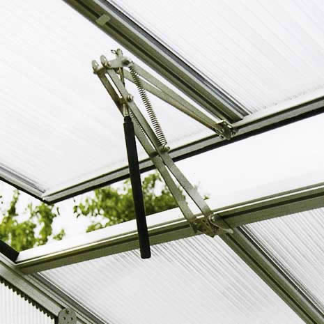RIGA Automatic Window Opener with quick release "arm" - allows the opener to be disconnected in adverse weather conditions. Paraffin oil in piston expands starting around 72ºF.