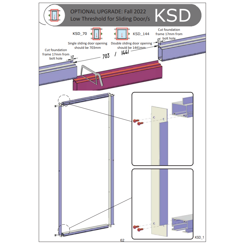 Low threshold entry option kit for double or single sliding doors. Cut to fit.